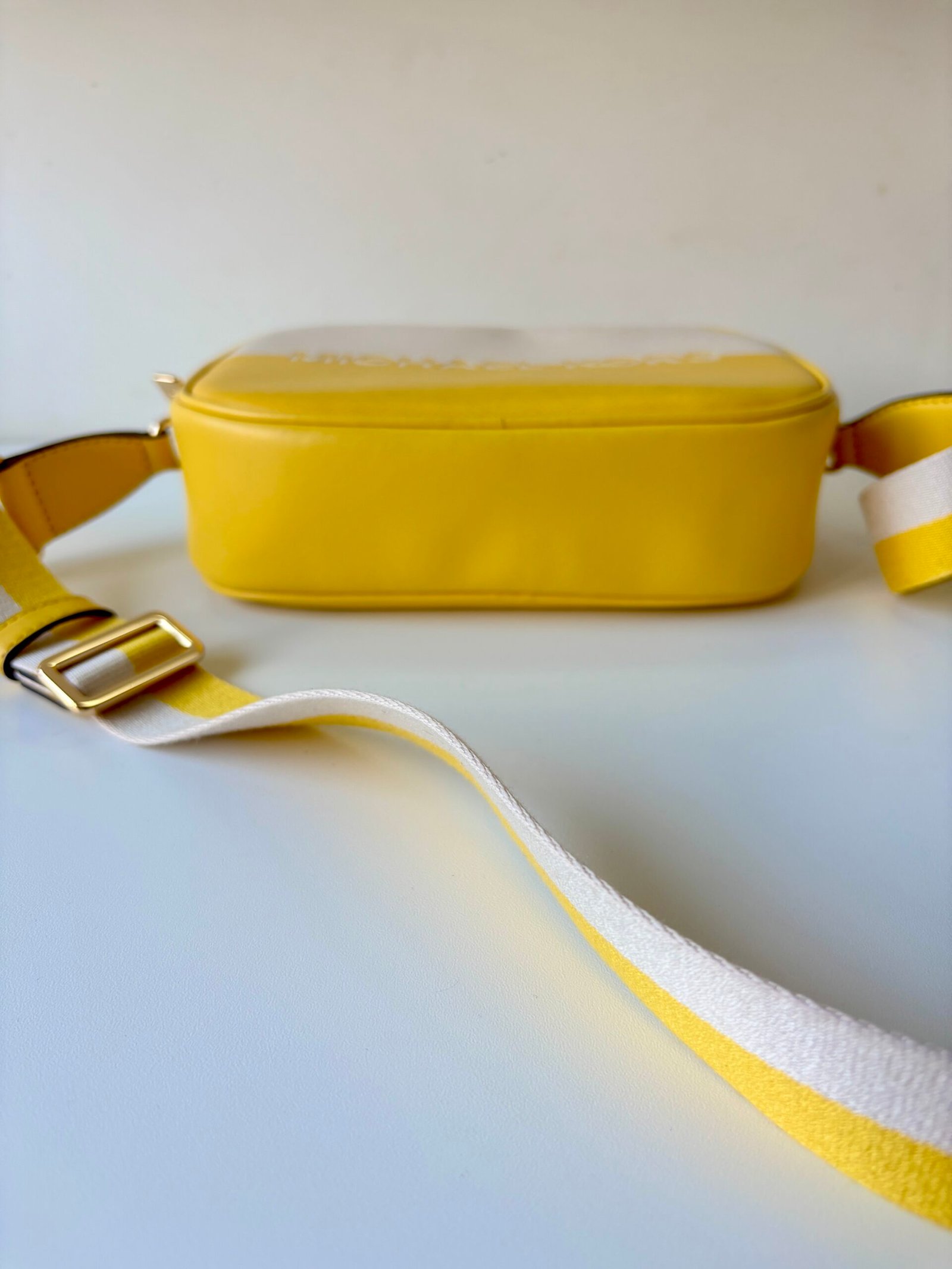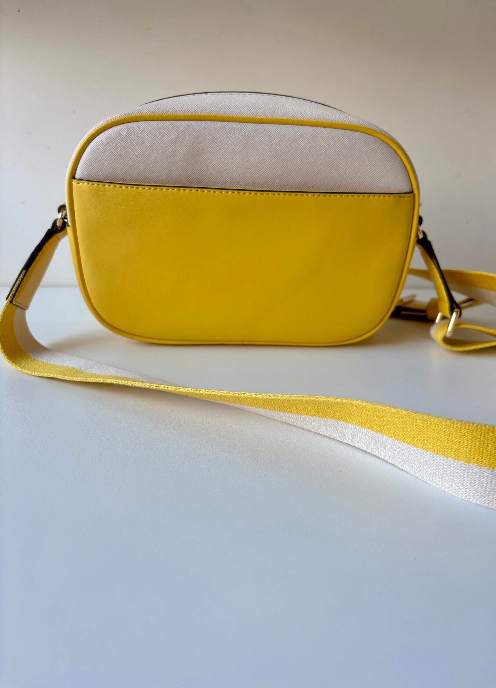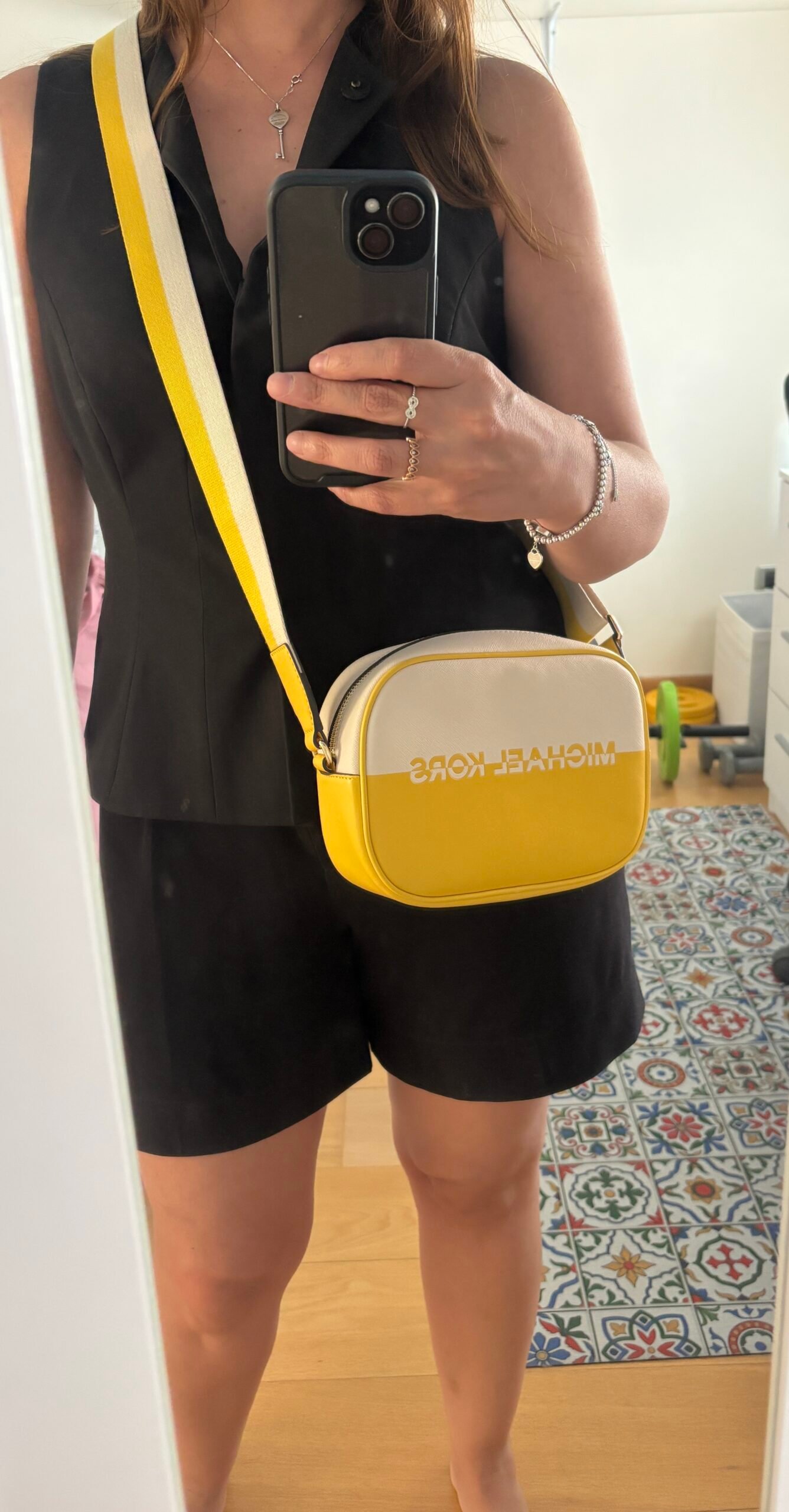Essa bolsa funciona muito bem como peça de destaque, já que o amarelo chama atenção e traz uma vibe otimista e fresca, ideal para looks de primavera e verão