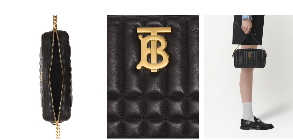 É uma bolsa de luxo da marca Burberry, usada poucas vezes, em excelente estado, como nova! Em couro preto, com acabamento matelassê geométrico, formando linhas verticais e quadradas que dão textura e um visual sofisticado, transmitindo elegância e qualidade.
