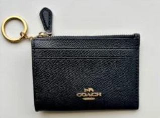 Logo coach em dourado na parte frontal, e vem com corrente e argola para pendurar na bolsa como charm ou mesmo pra quem tem bolsa grande e quer deixar pendurado internamente para achar com mais facilidade